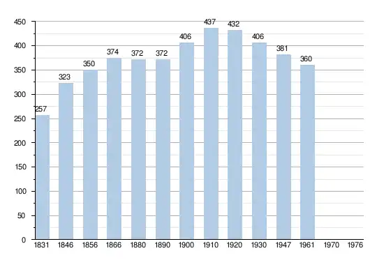 - Sources:INS, Rem:1831 jusqu'en 1970=recensements, 1976= nombre d'habitants au 31 décembre