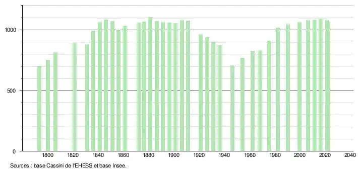 - ↑ Fiches Insee - Populations de référence de la commune pour les années 2006, 2007, 2008, 2009, 2010, 2011, 2012, 2013, 2014, 2015, 2016, 2017, 2018, 2019, 2020, 2021 et 2022.