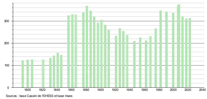 - ↑ Fiches Insee - Populations de référence de la commune pour les années 2006, 2007, 2008, 2009, 2010, 2011, 2012, 2013, 2014, 2015, 2016, 2017, 2018, 2019, 2020, 2021 et 2022.