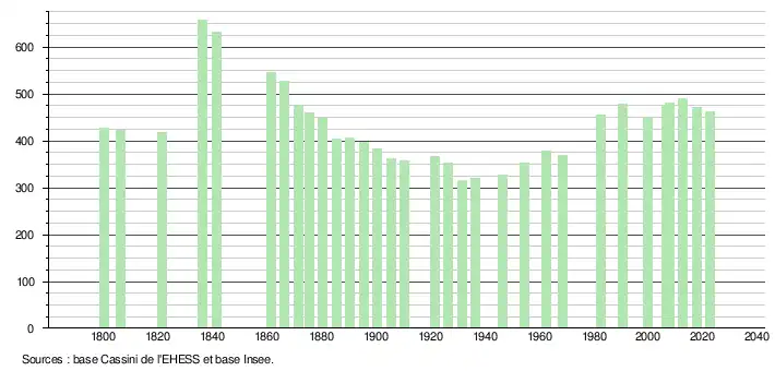 Les divers recensements modernes nous montrent que la population depuis 1802 partant de 428 personnes, diminue régulièrement jusqu'en 1931, la croissance reprenant alors pour atteindre actuellement près de 500 personnes[12].