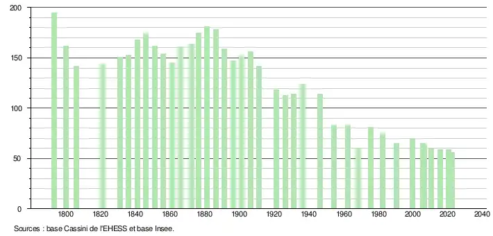 - ↑ Population municipale de référence en vigueur au 1er janvier 2025, millésimée 2022, définie dans les limites territoriales en vigueur au 1er janvier 2024, date de référence statistique : 1er janvier 2022.
