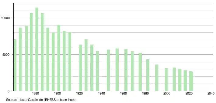 ↑ Population municipale de référence en vigueur au 1erjanvier2025, millésimée 2022, définie dans les limites territoriales en vigueur au 1erjanvier2024, date de référence statistique: 1erjanvier2022.