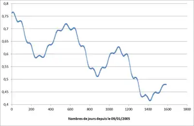 Entre les différentes époques du tableau, la valeur oscille (elle diminue puis réaugmente, etc.).