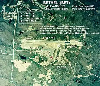 L'aéroport de Bethel a une importante activité dans le transport des voyageurs et des marchandises, d'autant plus qu'il n'y a pas de route pour relier la ville au reste de l'état, à laquelle s'ajoute l'activité des hydravions sur la rivière Kuskokwim