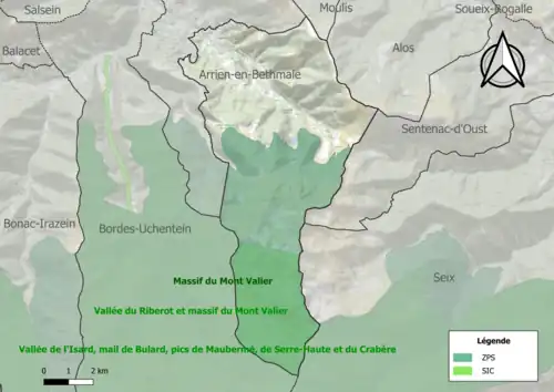 - les « massifs du mont Valier, du Bouirex et montagnes de Sourroque » (32 357 ha), couvrant 18 communes du département[32].
