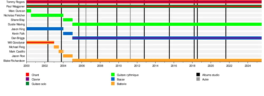 - Paul Waggoner – guitare lead, chant secondaire (depuis 2000)