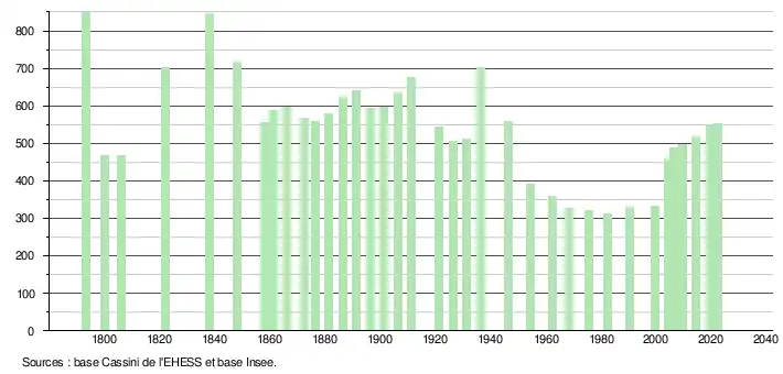 - ↑ Fiches Insee - Populations de référence de la commune pour les années 2006, 2007, 2008, 2009, 2010, 2011, 2012, 2013, 2014, 2015, 2016, 2017, 2018, 2019, 2020, 2021 et 2022.