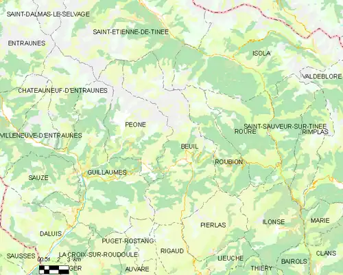 - ↑ « Orthodromie entre Beuil et Péone », sur fr.distance.to (consulté le ).