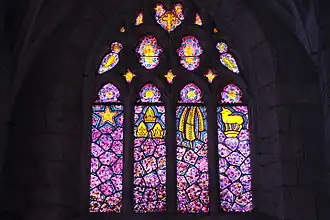 - L'église Saint-Hélier (XIIIe, XVIe, XVIIIe et XIXe)[30]. Cette église est dédiée à saint Hélier (moine du VIe siècle originaire de Tongres en Belgique qui devint ermite à Jersey et donna son nom à la principale ville de l'île). Restauré à partir des années 1960 à l'initiative de son doyen, le chanoine Leprieur, cet édifice du XIIe siècle possède notamment une collection complète de vitraux dus au maître verrier François Décorchemont, plusieurs statues de Josette Hébert-Coëffin ainsi qu'un orgue moderne par le facteur Haerpfer-Erman. Un élément assez rare est, au chevet, un pignon en colombage.