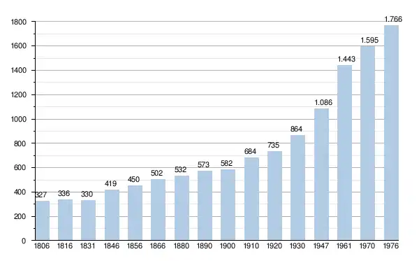 - Sources : INS, Rem. : 1831 jusqu'en 1970 = recensements, 1976 = nombre d'habitants au 31 décembre[2].