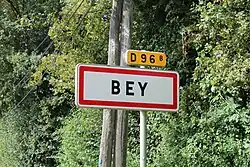 - ↑ Panneau situé devant l'église de Bey.