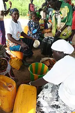 Le dolo prêt pour la consommation est conditionné pour la vente en bidon en plastique de 1, 5, 10 et parfois 20 litres ou dans des canaris vendus dans des cabarets appelés "gboulsiu".
