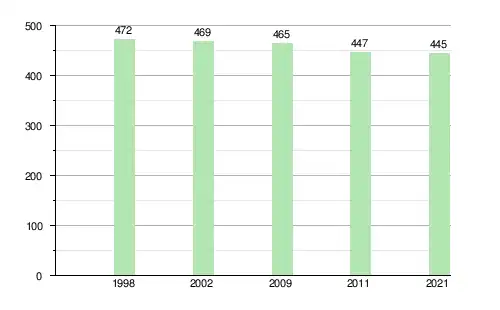 En 2021, le village de Białożewin comptait 445 habitants, en diminution de −5,72 % par rapport à 1998[6]. En 2021, 58,7 % des habitants du village de Białożewin étaient en âge de travailler (entre 18 et 64 ans pour les hommes et 18 et 59 ans pour les femmes). 22,5 % des habitants avaient moins de 18 ans et 18,9 % avaient l'âge légal de la retraite. Les personnes en âge de travailler représentaient 59,5 % de la population de la voïvodie de Couïavie-Poméranie et 59,5 % de la population de Pologne. Ainsi, le taux de dépendance démographique du village de Białożewin est équivalent à celui de la voïvodie de Couïavie-Poméranie et équivalent à celui de la Pologne[7].