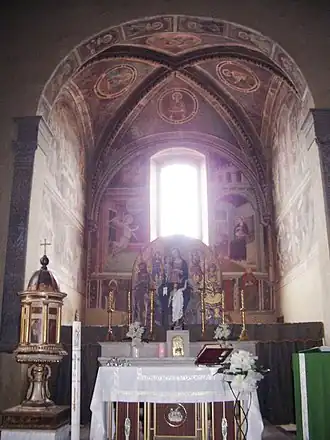 Annonciation sur la paroi du fond de l'abside de l'église San Michel Arcangelo (Paganico).