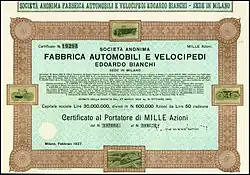 La société F.I.V. Edoardo Bianchi, plus connue sous le simple nom de Bianchi, est une société italienne spécialisée dans la production de bicyclettes qui a été fondée à Milan en 1885 par Edoardo Bianchi. L'entreprise se lancera, des années plus tard, dans la production d'automobiles, de motos et de camions.