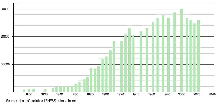 - ↑ Fiches Insee - Populations de référence de la commune pour les années 2006, 2007, 2008, 2009, 2010, 2011, 2012, 2013, 2014, 2015, 2016, 2017, 2018, 2019, 2020, 2021 et 2022.