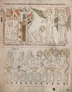 Livre de la Genèse (19, 1–3), Bible de Velislav, fol. 18v.