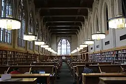 La pièce maîtresse de cet ensemble est la bibliothèque commémorative Sterling, un bâtiment collégial de style gothique construit en 1931 et contenant les principaux bureaux de la bibliothèque, les archives de l'université, une bibliothèque musicale et 3,5 millions de volumes. La bibliothèque est également connue pour sa collection majeure de livres rares, abritée principalement dans la bibliothèque Beinecke de livres rares et manuscrits ainsi que dans la Bibliothèque médicale Harvey Cushing/John Hay Whitney, la bibliothèque de droit Lillian Goldman et la bibliothèque Lewis Walpole à Farmington, dans le Connecticut. Beaucoup d'écoles et de départements de Yale conservent également leurs propres collections, comprenant douze installations sur le campus et une installation d'étagères hors campus.