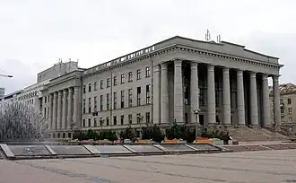 La Bibliothèque nationale est un monument de l'architecture du réalisme socialiste. Les auteurs de la conception technique du bâtiment (1952) étaient l'architecte Viktor Anikin et le designer Ciprijonas Strimaitis. Le bâtiment de la bibliothèque a été achevé en 1958 et le bâtiment actuel a été officiellement inauguré le 4 décembre 1963. Il s'agissait du premier bâtiment des pays baltes conçu et construit spécifiquement pour une bibliothèque.