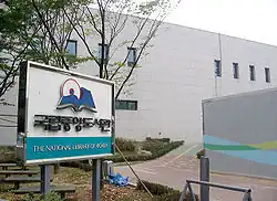 La Bibliothèque nationale de Corée, créée le 15 octobre 1945, est la plus grande bibliothèque du pays, son prédécesseur était la bibliothèque du bureau du gouverneur de Joseon, créée par les envahisseurs japonais en novembre 1923[2]. Elle compte plus de 8 millions de livres, dont de nombreux livres en langues étrangères, ainsi que des Trésors nationaux coréens.