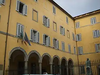 La bibliothèque est établie dans l'ancien couvent de l'église Santa Maria Corteorlandini (it), anciennement l'église de l'ordre religieux des Clercs réguliers de la Mère de Dieu (en latin : Ordo Clericorum Regularium Matris Dei). Elle occupe la majeure partie du bâtiment et comprend trois grandes salles monumentales. La plus grande et la plus importante d'entre elles est le salon monumental baroque situé au dernier étage. Cette salle était l'ancienne bibliothèque de l'ordre.