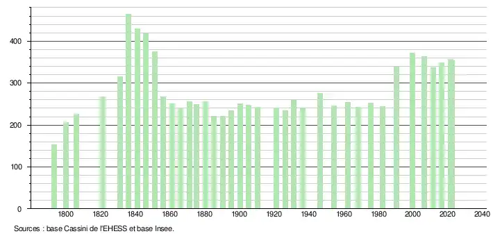 - ↑ Fiches Insee - Populations de référence de la commune pour les années 2006, 2007, 2008, 2009, 2010, 2011, 2012, 2013, 2014, 2015, 2016, 2017, 2018, 2019, 2020, 2021 et 2022.