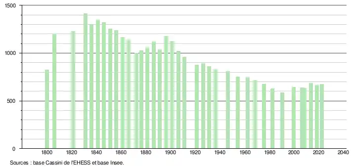 - ↑ Fiches Insee - Populations de référence de la commune pour les années 2006, 2007, 2008, 2009, 2010, 2011, 2012, 2013, 2014, 2015, 2016, 2017, 2018, 2019, 2020, 2021 et 2022.
