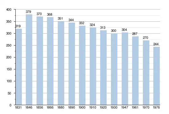 - Sources : INS, Rem. : 1831 jusqu'en 1970 = recensements, 1976 = nombre d'habitants au 31 décembre.