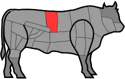 Mise en évidence de la zone de la longe et des côtes, dont dérive la coupe de viande.