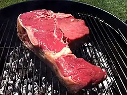 La viande est posée sans assaisonnement, opération fondamentale pour éviter qu'elle ne durcisse ; il ne faut la retourner qu'une seule fois en la faisant cuire environ 3 à 5 minutes de chaque côté, pas plus. Enfin, il faut la cuire debout, côté os, pendant 5 à 7 minutes, jusqu'à ce que les traces de sang disparaissent (qui n'est pas du sang, mais de la myoglobine, une protéine). Le steak doit être suffisamment épais pour tenir debout tout seul. Cependant, il existe une autre école qui soutient que la viande ne doit pas être cuite debout.