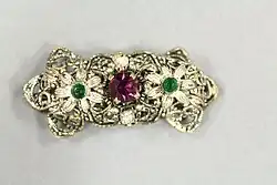 Certains auteurs, en particulier ceux qui se concentrent sur le marché des collectionneurs, soutiennent que l'importance des bijoux en tant que moyen d'auto-identification avec le mouvement des suffragettes est surestimée, en raison de la popularité de ces couleurs de bijoux avant et après la période de leur diffusion[3]. Cependant, comme le note Elizabeth Goring, la combinaison de couleurs violet-blanc-vert est profondément symbolique du mouvement suffragiste et l'utilisation de ces couleurs « offrait un moyen puissant par lequel les suffragettes pouvaient annoncer publiquement leur identité, et ne serait pas interprétée comme simplement décoratifs par d'autres »[2].