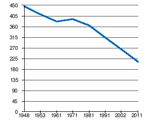 | 444 | 413 | 382 | 391 | 365 | 314 | 265[2] | 212[1] |
