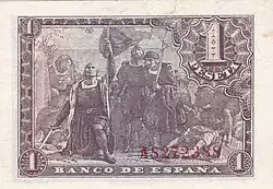 1 Ptas | 75 x 51 mm | Marron | Don Quichotte | Armes et livre | P-139 | |||||