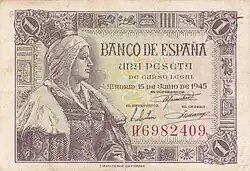 1 Ptas | 75 x 51 mm | Marron | Dame d'Elche | Branche d'Oranger | P-135 | |||||
