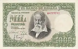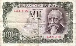 1000 Ptas | 143 × 83 mm | Vert | José de Echegaray | Banque d'Espagne | José de Echegaray | P-154 | ||||