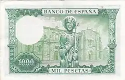 1000 Ptas | 146 × 91 mm | Vert | Isidore de Séville | Statue de Isidore de Séville et la basilique de San Isidoro de León | Isidore de Séville | P-151 | ||||