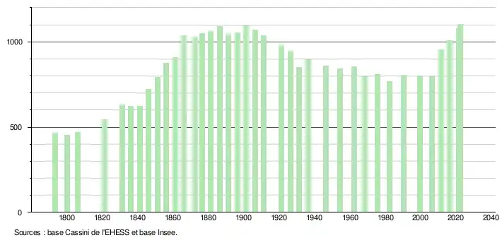 - ↑ Fiches Insee - Populations de référence de la commune pour les années 2006, 2007, 2008, 2009, 2010, 2011, 2012, 2013, 2014, 2015, 2016, 2017, 2018, 2019, 2020, 2021 et 2022.