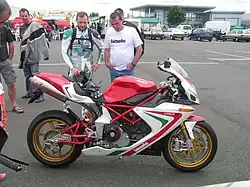 Le carénage se couvre d'une livrée noire mat, parsemée de touches dorées. Les jantes OZ sont reprises de la DB5R et le freinage est confié à des étriers Brembo série or. Le poids passe à 169 kg[9].