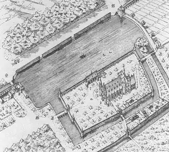 Pendant longtemps, toute la zone de la Binnenhof et du Buitenhof était entourée de murs. Il y avait des portes pour aller de la cour intérieure aux cours extérieures et de là pour se rendre à l'extérieur.