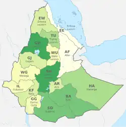 Depuis les travaux d'Alfred Russel Wallace en 1876, le continent africain est divisé en deux domaines biogéographiques majeurs : l'Afrotropique (appelé « domaine éthiopien » par Wallace) et le Paléarctique, qui comprend aussi la majeure partie de l'Eurasie. Les deux domaines, ou « écozones », sont séparés par l'immense désert du Sahara, qui constitue une barrière naturelle majeure à la migration des espèces[5]. L'Éthiopie est entièrement située dans la zone afrotropicale, bien qu'une petite partie de sa faune et de sa flore soit d'origine paléarctique. Au XXIe siècle, le Fonds mondial pour la nature (WWF) a proposé une division des terres émergées du globe terrestre en « écorégions », définies comme des unités contenant un assemblage distinct d'espèces et dont les limites se rapprochent de l'étendue originelle des communautés naturelles avant l'anthropisation[6]. Pour l'Afrique, cette catégorisation se base principalement sur les travaux de classement de la végétation de Frank White (voir infra). Le territoire national éthiopien s'étend principalement sur six de ces régions écologiques et englobe des portions marginales de cinq autres. Les onze écorégions représentent cinq des quatorze biomes de la planète et montrent un niveau de distinction biologique (richesse en espèces animales et végétales, taux d'endémisme) remarquablement élevé (voir infra). Près de 90 % du territoire éthiopien appartient à la biorégion de la Corne de l'Afrique, un assemblage géographique qui présente de fortes affinités au niveau de la faune et la flore. L'Éthiopie est enfin au centre de deux points chauds de biodiversité, sélectionnés à la fois pour leur richesse biologique et pour le fait d'avoir déjà perdu une part importante de leurs habitats : la Corne de l'Afrique et les Montagnes d'Afrique orientale et d'Arabie[7].