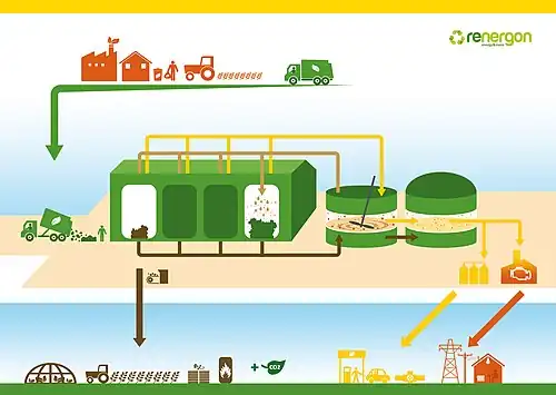 - décharges : leur teneur en biogaz est plus ou moins élevée en fonction de l'étanchéité du mode d'exploitation. La collecte sélective des déchets putrescibles permet une méthanisation plus rapide qu'en décharge standard en utilisant des bioréacteurs spécifiques (digesteurs)[5]. La récupération du biogaz de décharge est doublement intéressante car le méthane libéré dans l’atmosphère est un gaz à effet de serre bien plus puissant que le dioxyde de carbone (CO2) produit par sa combustion ;