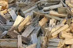 Bois sous forme de bûches pour chauffage. Le bois énergie est un type de bioénergie utilisant la biomasse.