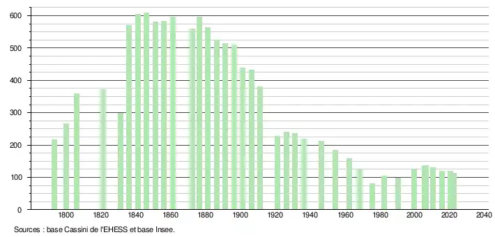 - ↑ Fiches Insee - Populations de référence de la commune pour les années 2006, 2007, 2008, 2009, 2010, 2011, 2012, 2013, 2014, 2015, 2016, 2017, 2018, 2019, 2020, 2021 et 2022.