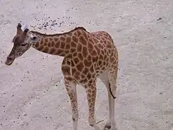 Jeune girafe du Kordofan dans le camp des girafes