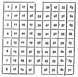 - ↑ P. N. Huyn, La Théorie des jeux de hasard, ou Analyse du krabs, du passe-dix, de la roulette, du trente & quarante, du pharaon, du biribi & du lotto, s. n., 1788, p. 45. Texte en ligne