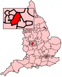 Birmingham (/biʁmiŋam/[a] ; en anglais : /bɜːmɪŋəm/[b],[1] ) est une ville et un district métropolitain des Midlands de l'Ouest au centre de l'Angleterre. Sa population de 1 144 900 habitants (estimation de 2021)[2] la classe deuxième ville du Royaume-Uni après Londres et avant Manchester. Elle fait partie de la conurbation des Midlands de l'Ouest, laquelle a une population de 4 332 629 habitants (estimation 2018)[3]. Depuis 1889, elle a le statut de cité.
