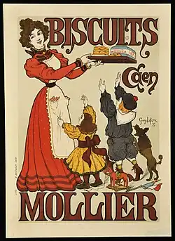 À partir du Second Empire et avec l'arrivée du chemin de fer, la Normandie voit arriver les villégiaturistes qui s'adonnent aux bains de mer sur le littoral et se retrouvent à l'heure du thé autour de boissons chaudes, agrémentées de biscuits locaux dont le plus populaire est le sablé normand. Cette pâtisserie, qui a l'avantage de se conserver plusieurs semaines, apparaît dans les devantures des boulangeries et des épiceries ou autres petits commerces de bouche qui explosent à la fin du XIXe siècle. Sa fabrication est artisanale et se fait en ateliers avec quelques ouvriers. L'une des biscuiteries les plus anciennes du Calvados est la Biscuiterie normande, créée en 1850 à Caen par Pierre Mollier, qui se spécialise dans la fabrication haut de gamme avec des matières premières provenant de Normandie. Outre des sablés, elle fabrique des petits fours, des biscuits secs dits « biscuits de Reims » et des biscuits à la cuiller appelés « biscuits Duchesse ». Sa renommée est grande, la qualité de ses produits étant reconnue aux concours agricoles et culinaires de Cherbourg (1886), Saint-Lô (1882), Caen (1883), Le Havre (1887) et même de Paris (médaille de bronze dès 1880). En 1899, Pierre Mollier s'adresse à un artiste pour assurer la promotion de sa production : Georges Lefèvre, qui deviendra peintre de renom dans l'art de l'affiche sous le nom de Geo Lefèvre (1876-1953). La biscuiterie reçoit la médaille d’argent durant l’Exposition universelle de Paris en 1900. En ce début du XXe siècle, la biscuiterie, qui a étendu sa clientèle à toute la France, industrialise ses procédés de fabrication. Mais cet essor se trouve interrompu par la Première Guerre mondiale avec la pénurie de main-d'œuvre masculine et les mesures de restrictions alimentaires. Pour ravitailler les armées au front, la biscuiterie change de gamme et se voit contrainte d'importer de la farine de riz et de manioc. Elle survit avec deux ouvriers suisses et une dizaine d'employées femmes. A la fin de la guerre, en 1918, Pierre Mollier vend ses secrets de fabrication à un ancien banquier, Albert Boissel, qui décide de se reconvertir dans la biscuiterie dont il pressent l'importance économique. L'entreprise, implantée à Ifs, garde un caractère familial mais devient rapidement florissante au point qu'en 1925 Albert Boissel engage un associé pour le seconder, un jeune cherbourgeois dénommé Lucien Jeannette. Deux ans plus tard, Lucien Jeannette rachète les parts de ses associés et rebaptise la biscuiterie du nom de Biscuiterie moderne du Calvados[3], qui deviendra par la suite Biscuiterie Jeannette[4].