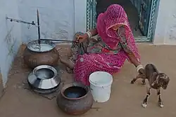 Femme Bishnoï habillée traditionnellement. | ||