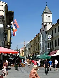 Le centre-ville renferme quant-à-lui les restes du Vieux Bazar ottoman, aux maisons basses typiques. Il est marqué par la tour de l'Horloge, qui date des années 1830[60], par le hammam Deboy et par le Bezisten, vaste marché couvert, construit au XVe siècle[61].