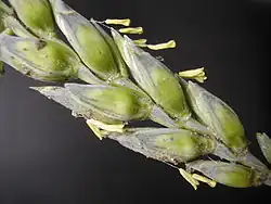 Les fleurs sont nombreuses, petites et peu visibles car achlamydes. Elles sont groupées en épis situés à l'extrémité des chaumes.